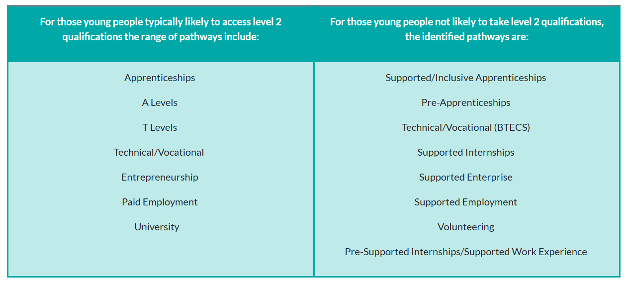 Career Pathways for learners who do receive level 2 qualifications